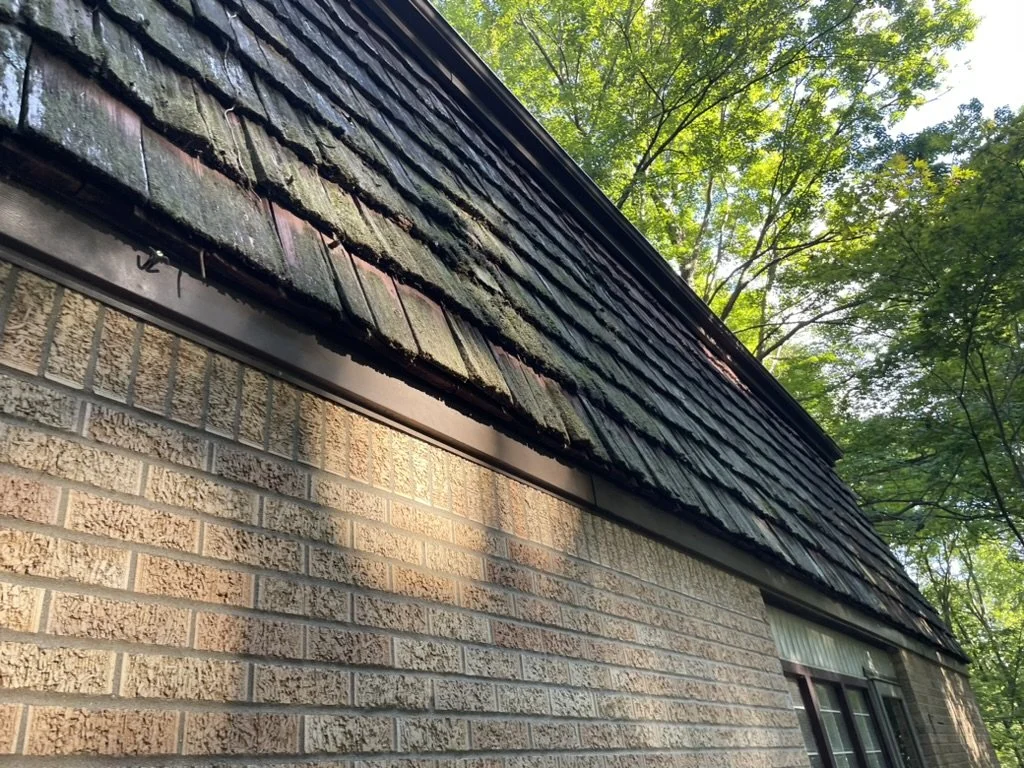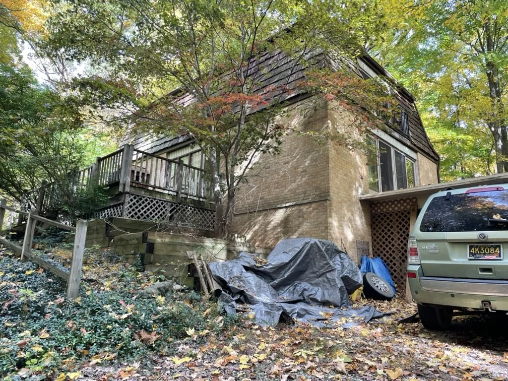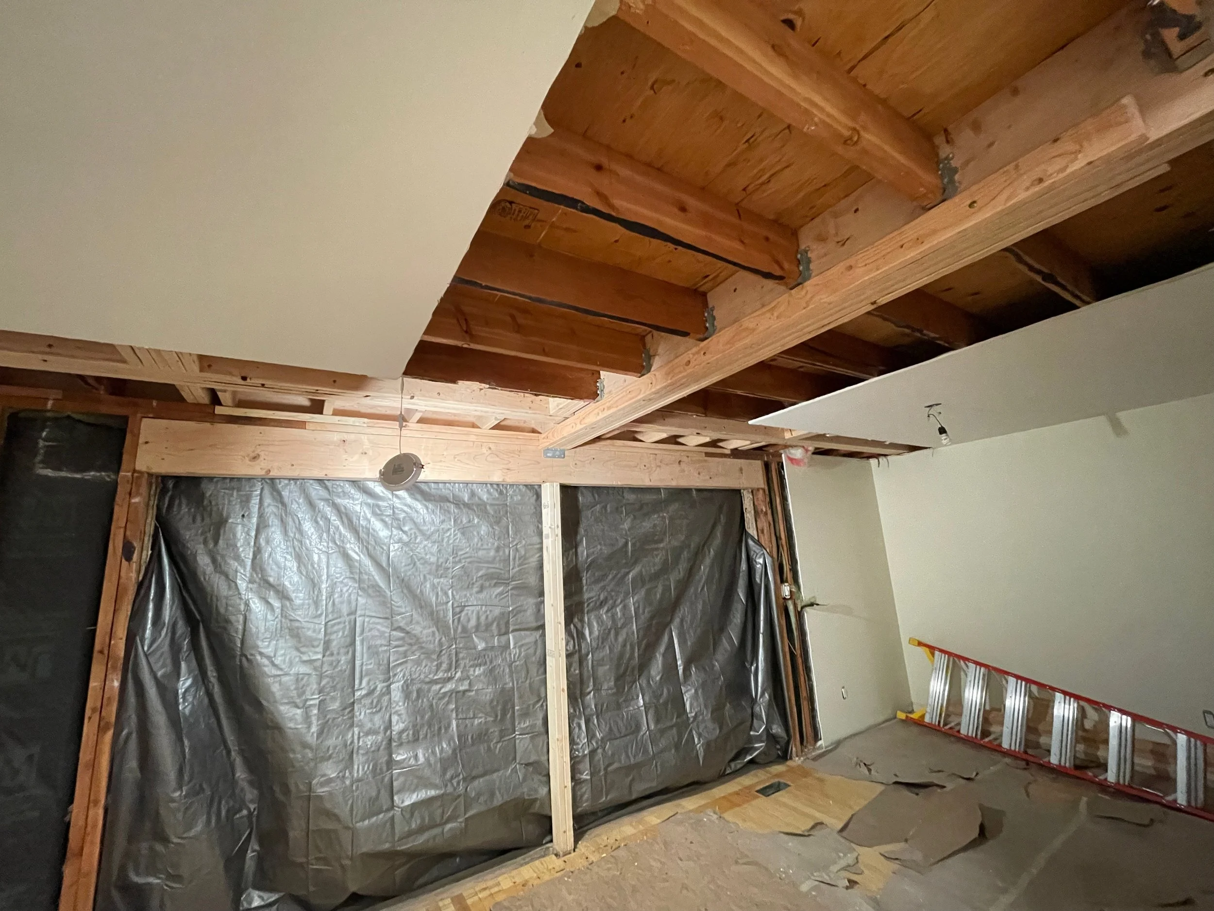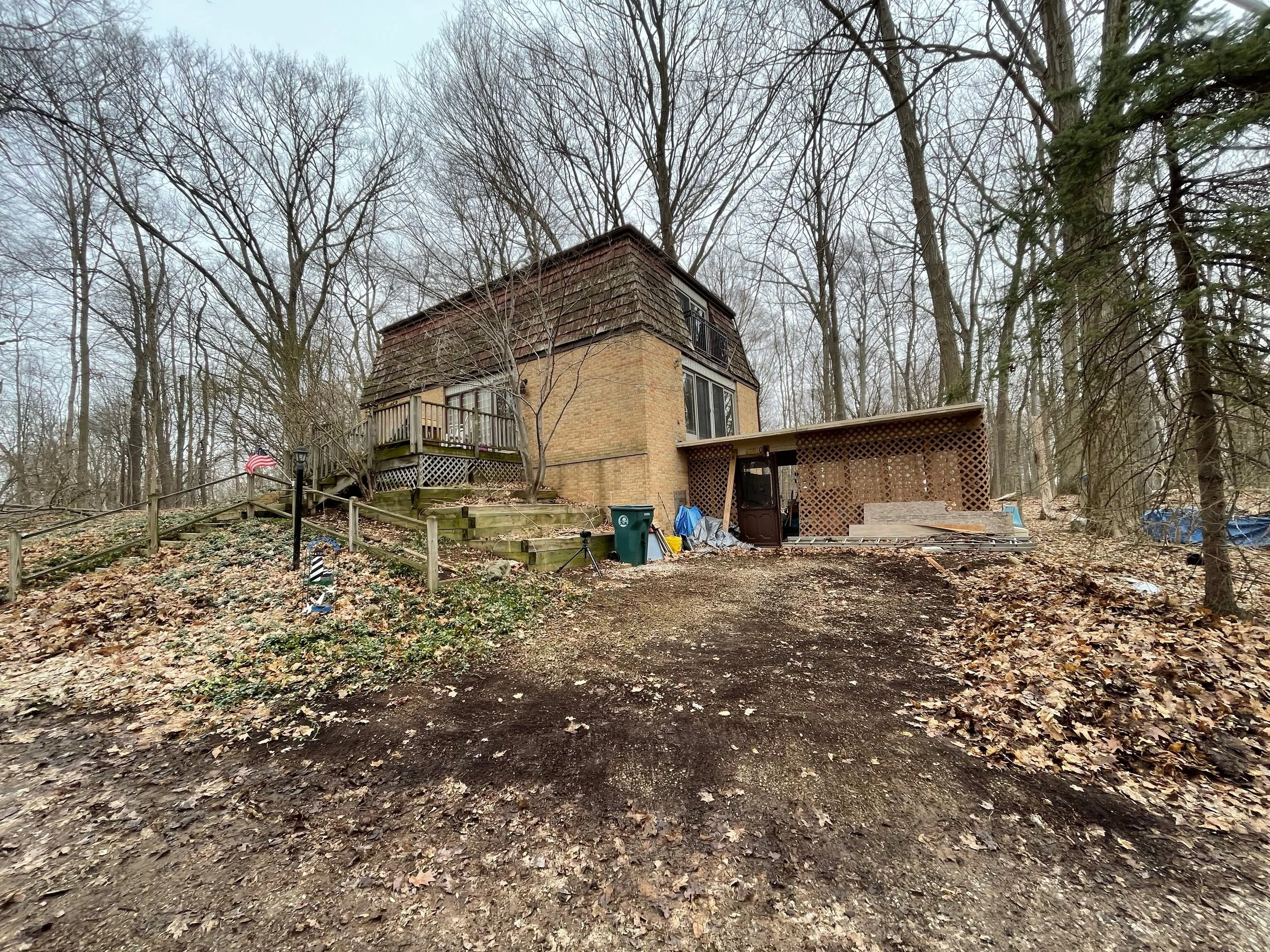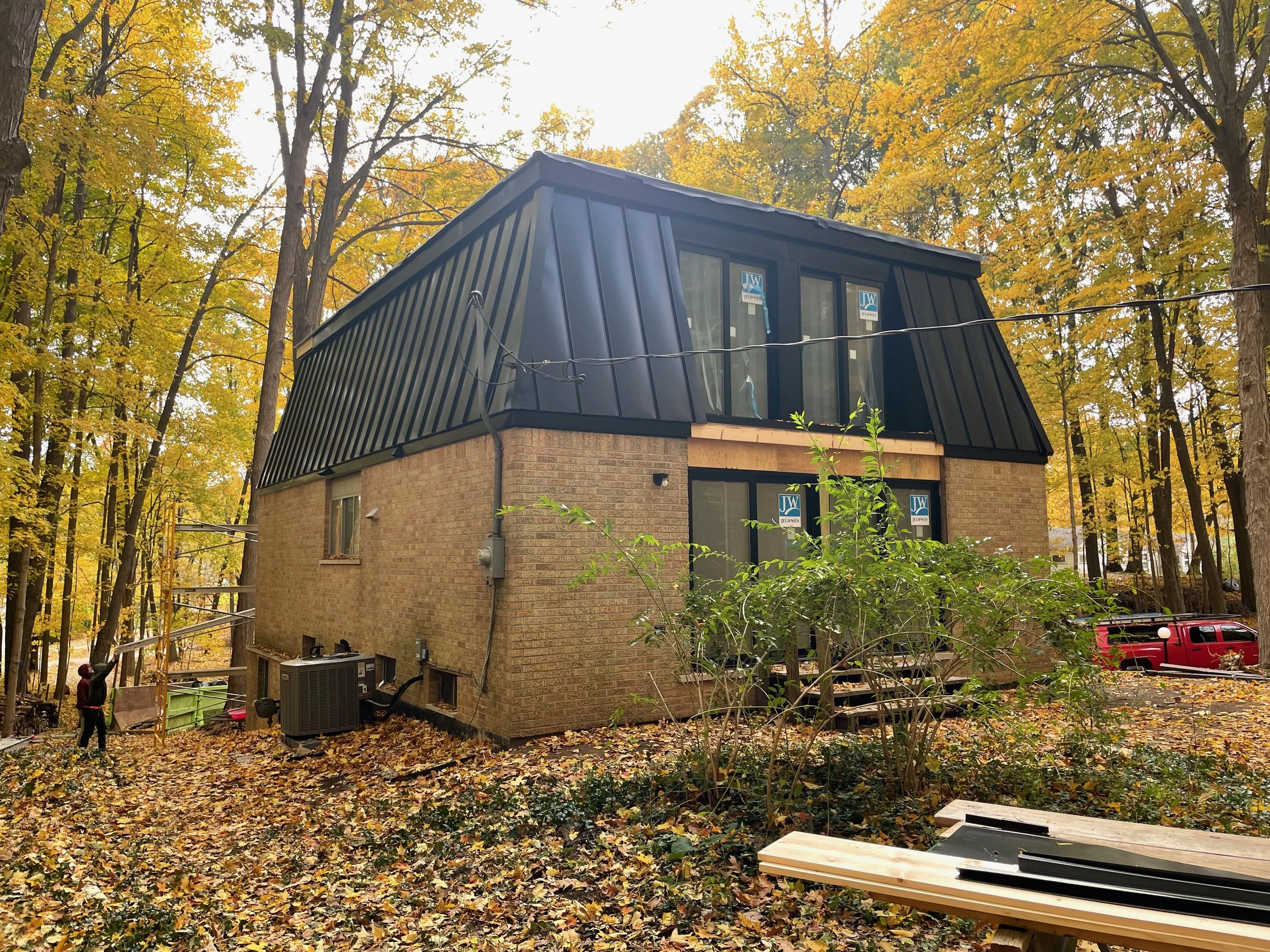 As the woods closed in, the flat roof and “Juliet” balconies created openings that allowed water to enter and compromise the supports, floors and foundation. The unmaintained cedar shake patinated to green moss and English Ivy as thick as a finger established throughout.